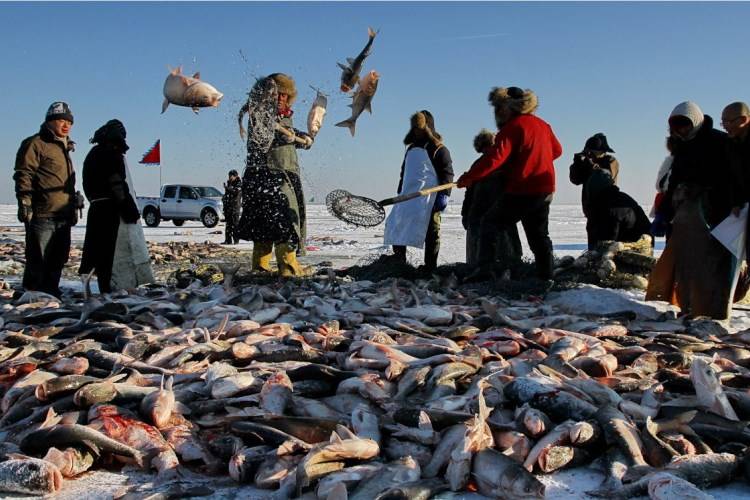 查干湖冬捕(或称渔猎),是一种传统的渔业生产方式(习俗)。早在辽金时期,查干湖冬捕就享有盛名。并连续打破多项吉尼斯世界纪录,吸引了全世界的目光。查干湖冬捕奇观已被列入非物质文化遗产名录。查干湖冬捕是著名的吉林八景之一 。