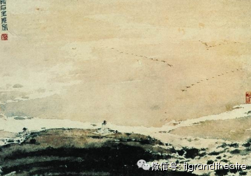 《平沙落雁图》,傅抱石,1962年镜心,纸本,设色, 47.4cm ×69.5cm,南京博物院藏