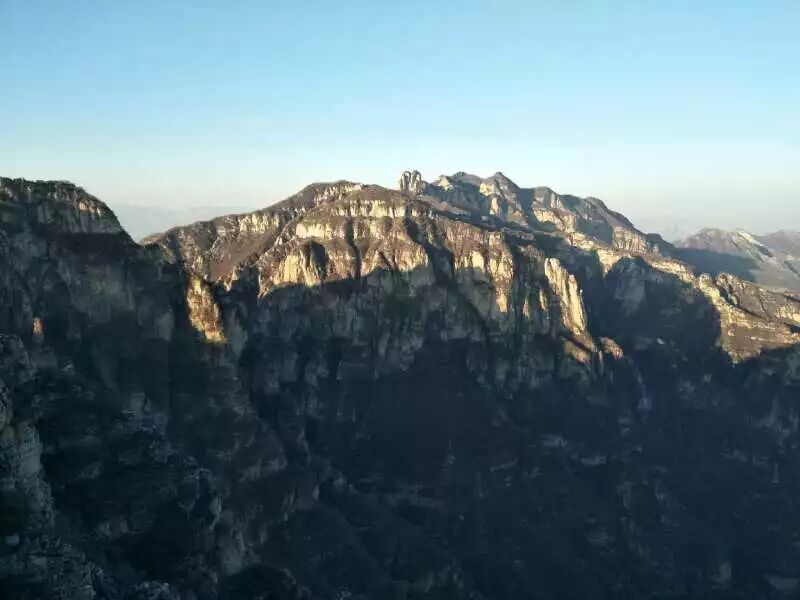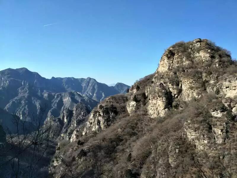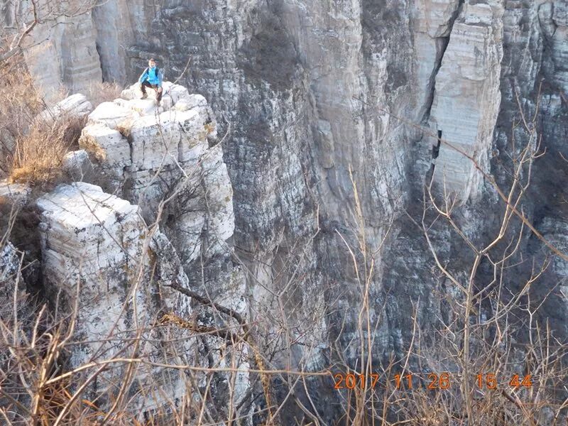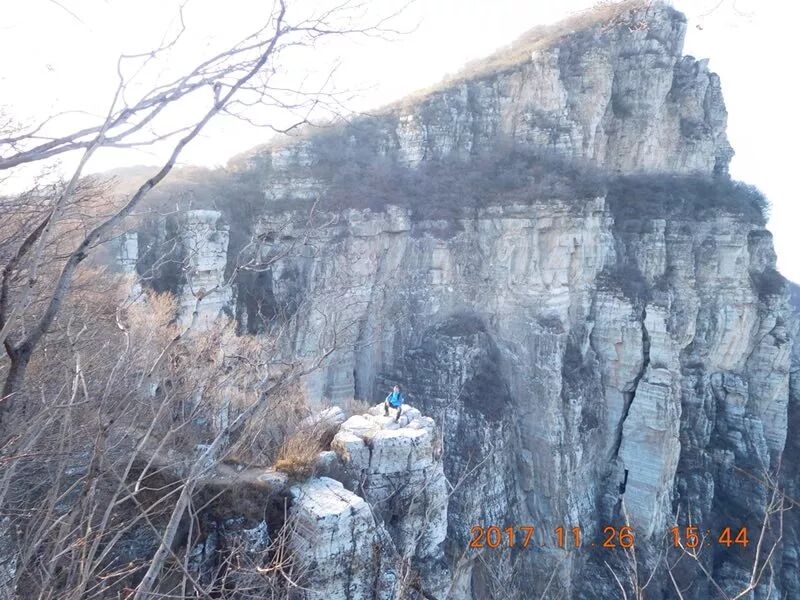 对了,还是有最后一座大山压在心头啊,对了最后还有一个爬升,说实话到了这里,那些吃完饭补充的能量,有消耗的差不多了,在加上路途有些远,大家也都是有一些疲惫。在经过大断崖的时候,稍微休息了一会,大断崖就像是大自然的神斧留给我们的奇迹,那一道道裂缝无不在显示着自然力量的不可披靡。一百多丈的断崖呈现在眼前,那种震撼,真的是听唬人的。即便站的很远也会让人灵魂颤抖,哈哈哈,吓得我都不敢去上面照相去。不过后面的路还是很长。所以也就咬咬牙,爬上去了,下山的路让人更纠结,特长,眼看天都黑了,还在沟里出不去,说不心急那就是骗人的了。看着路边的柿子,在也没有刚开始爬山的那种得瑟了,是的,就看看,我们就看看,不动石头之类的武器的。没有劲了啊,只能看看而已了。这才叫真正的有那贼心,也没有那……..