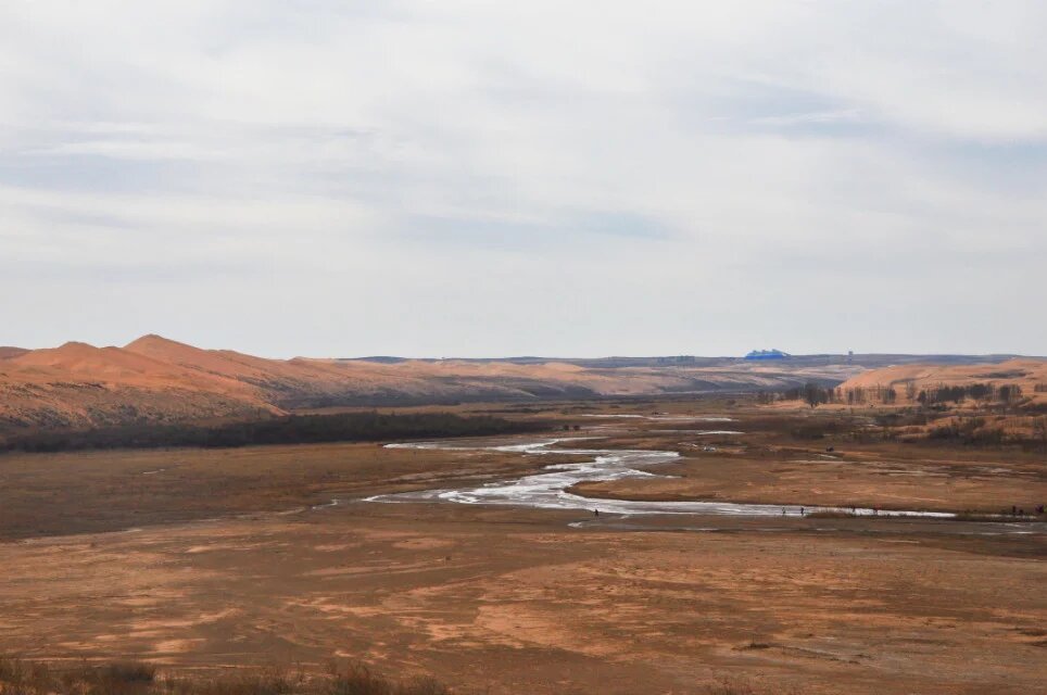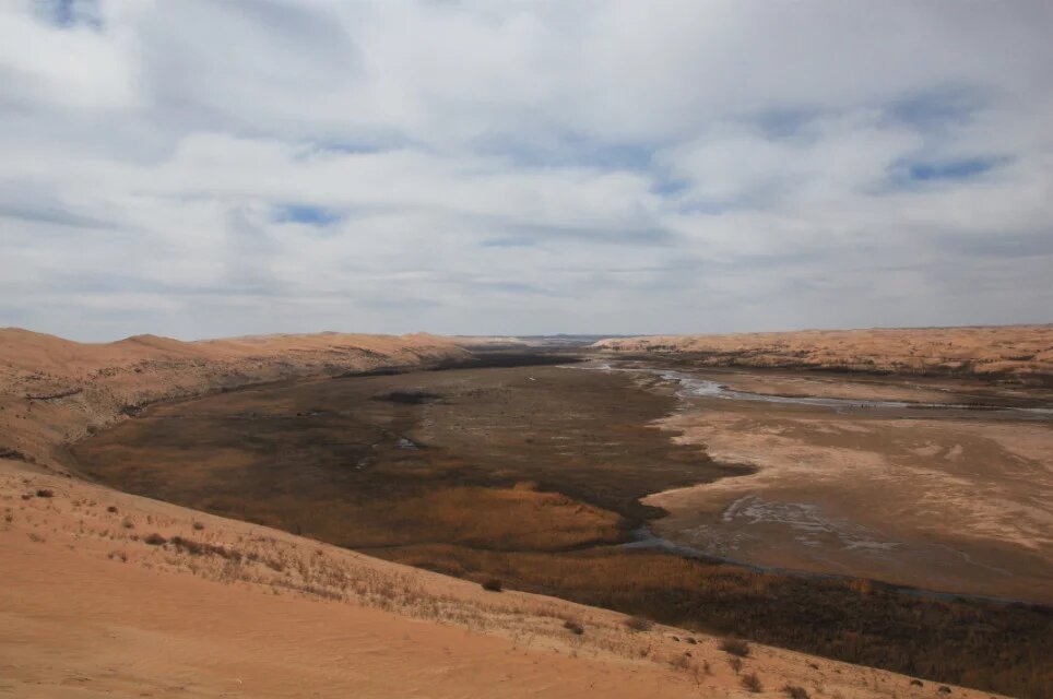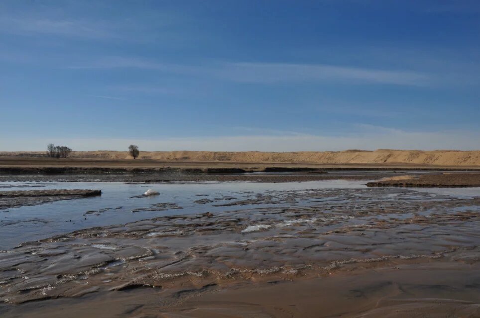 纵切的河谷较为宽广,但如今却只有涓涓细流,不知为何。大片的河漫滩上养育着丰盛的水草,哺育着马牛羊儿。河漫滩中间形成了小湖泊,清水倒映着白云蓝天,周遭围满了碧绿的水草,对面的马儿踏着马蹄,甩着长尾巴,享受着午后的美餐,它们偶尔嬉闹,奔跑,俊俏的面庞充满了骄傲。远处的黄沙此时只能成了他们的背景,水一直是生命的主人,它在这里,黄沙或许可以淡忘。我轻轻的用手撩动水面,波纹静悄悄散开,它是动的,而沙丘上却是静的。对着水面看了看自己,呲牙咧嘴的笑了笑,把自己也逗乐了。水该是刚化了得冰雪,还是刺骨的冰凉。起身,看了看远方肆意行驶的车辆,甚为无奈?实在不忍看见河滩上奔跑的汽车。为何城市锁不住这些车轮,非得来这马儿的天地里折腾。是一争高下还是无情掠夺。